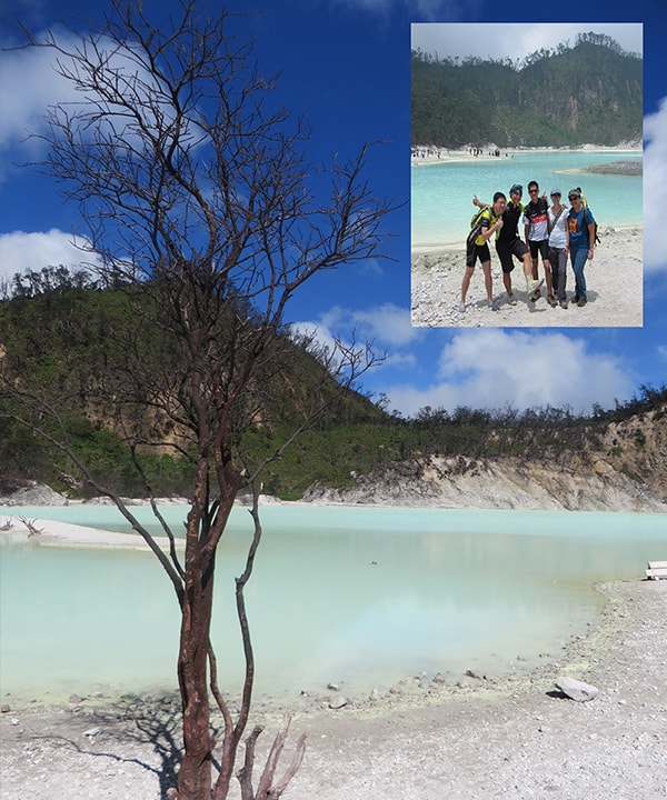 Ciwidey, an area in the Bandung Regency (the district surrounding the City of Bandung), is known for its cool climate, strawberry orchards, and panoramic countryside cut by the Ciwidey river. Ciwidey is best known for its crater named the “Kawah Putih” or White Crater” with its white sand spread out like snow and clear aqua colored lake. The crater lake sits on Mt. Patuha at an elevation of 2,386 meters above sea level.